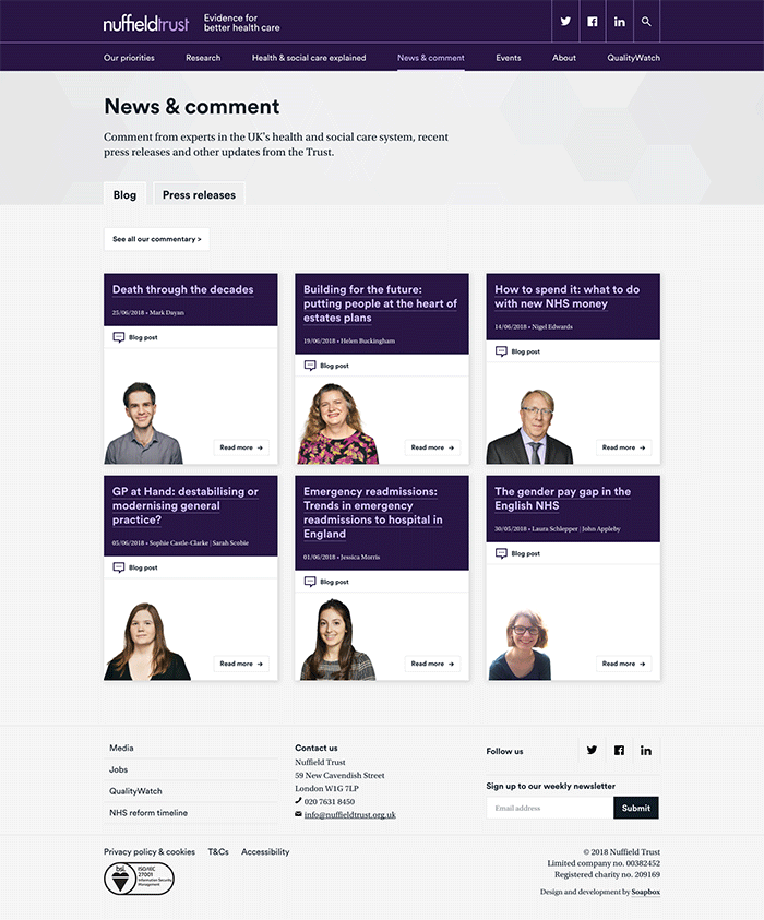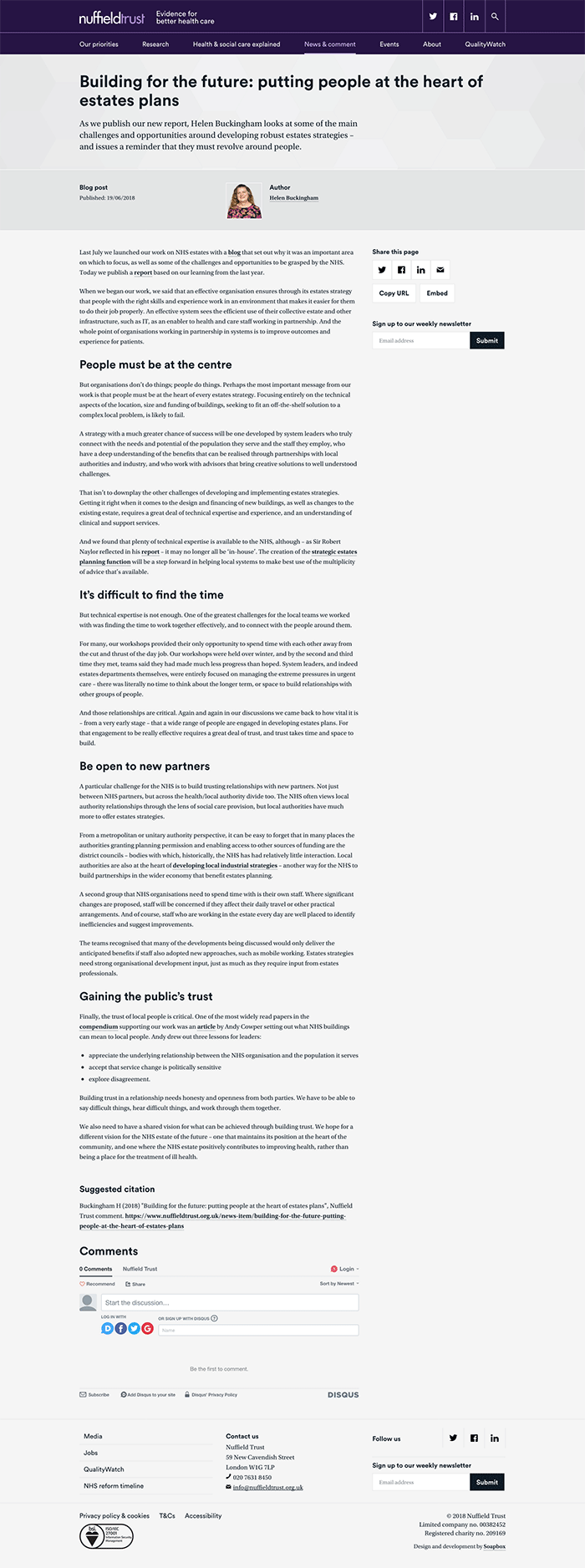 The Nuffield Trust is an independent health think tank. It aims to improve the quality of health care in the UK by providing evidence-based research and policy analysis and informing and generating debate.