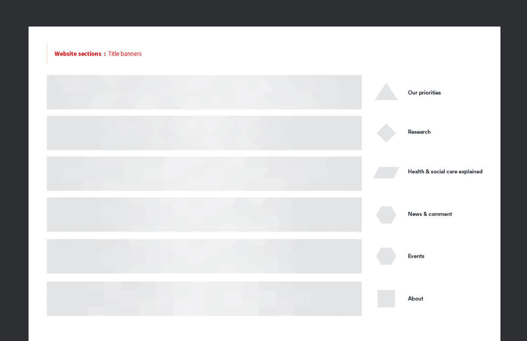 A set of backgrounds based on geometric shapes was created to be used for each site section.