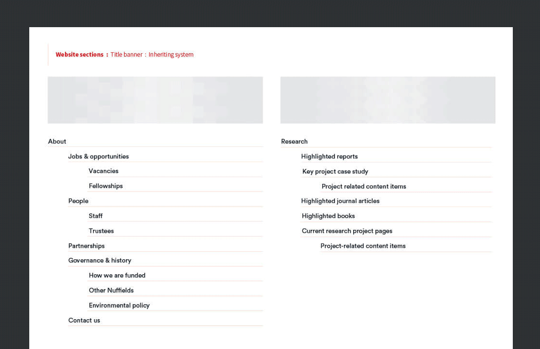 When a content page is part of a spotlight, it retains the banner image used on the section it lives under, but inherits the spotlight colour.
