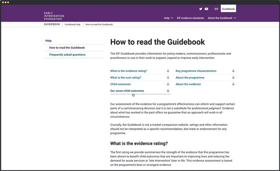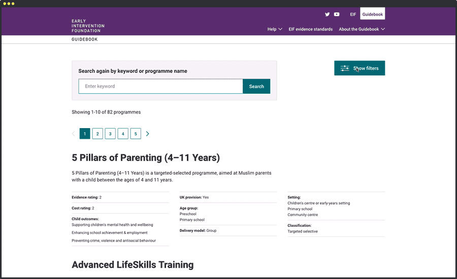The EIF Guidebook provides information about early intervention programmes that have been evaluated and shown to improve outcomes for children and young people.