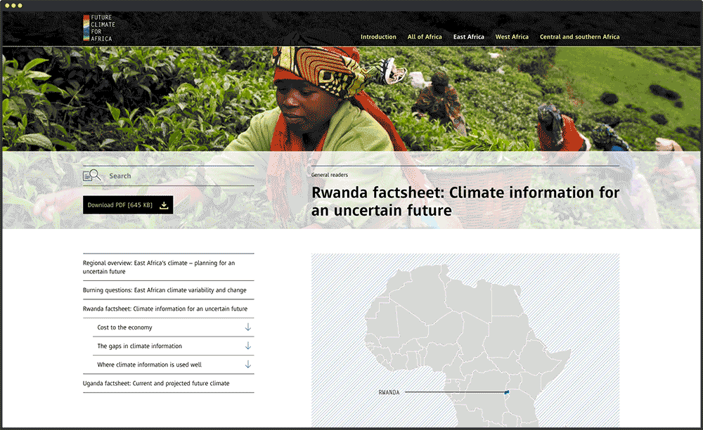 The Future Climate for Africa report, Africa’s climate: Helping decision-makers make sense of climate information, is designed as a guide for scientists, policy-makers, and practitioners on the continent."