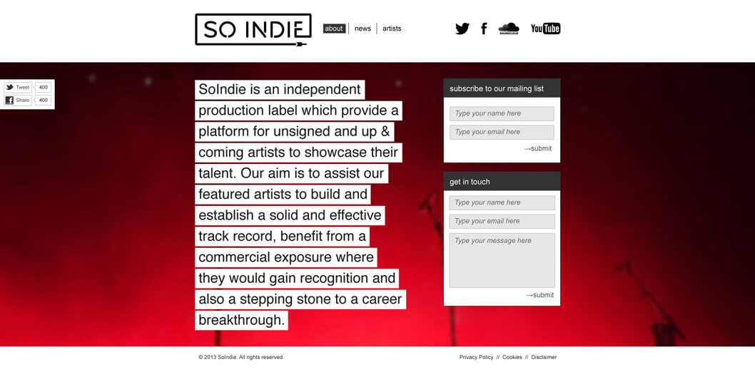 SoIndie is an independent production label that provides a platform for unsigned and up and coming music artists to showcase their talent.