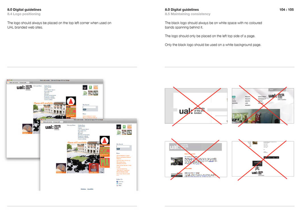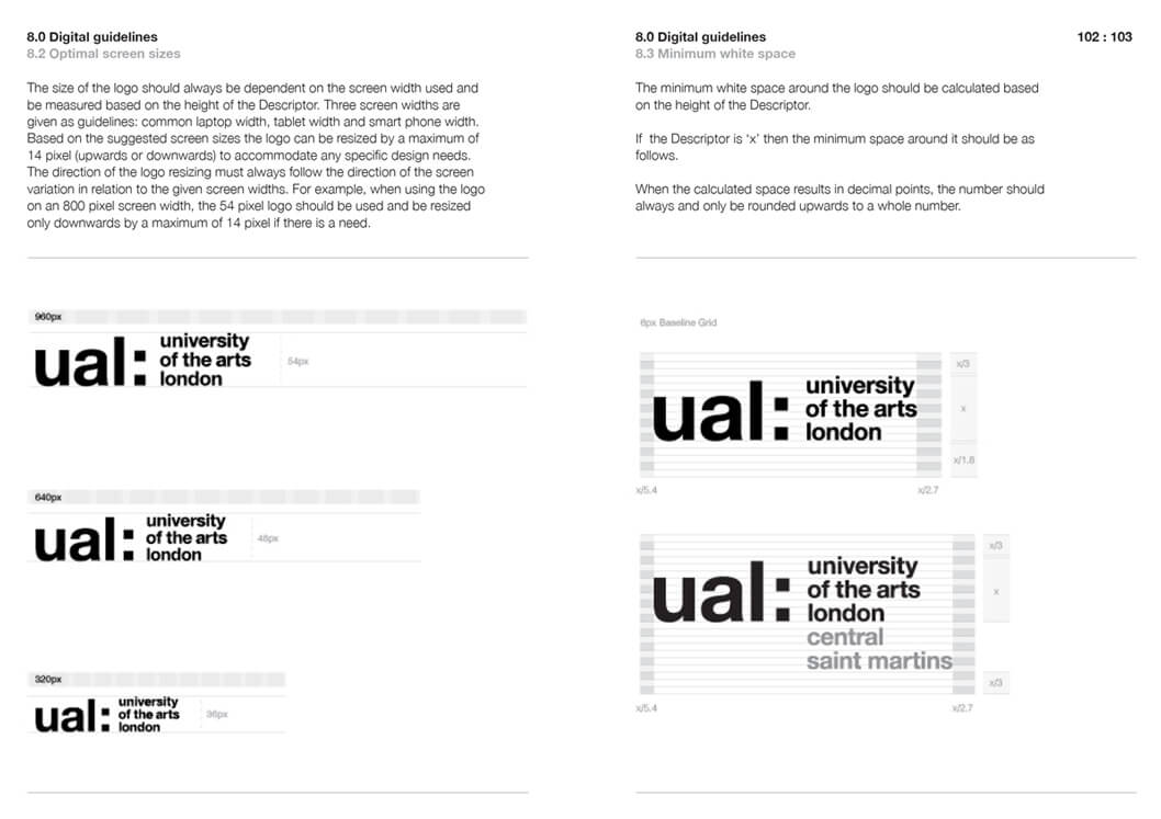 The brand guidelines delivered by the agency did not include digital, which was left to the UAL digital team to define. The new brand was implemented on the site as an interim solution while the site was being redesigned.
