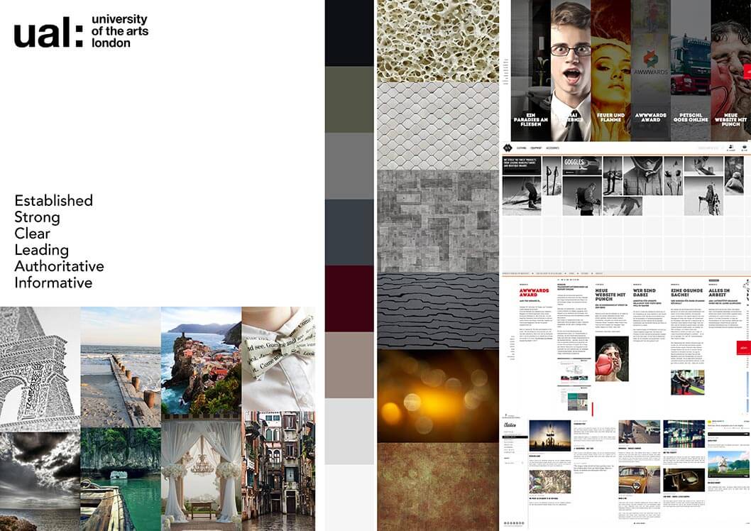 7 design workshops took place, facilitated by Pentagram and the UAL design team. As part of the design discovery phase we met with the six colleges and central services to understand their design requirements and sensibilities and get a steer towards their stylistic identities.