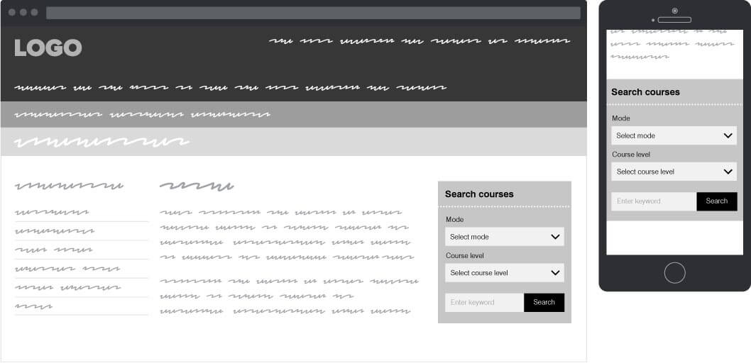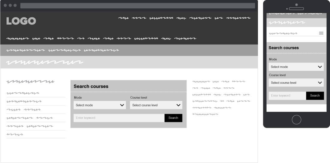 In addition to the course finder dropdown search, a separate search widget component was designed.
