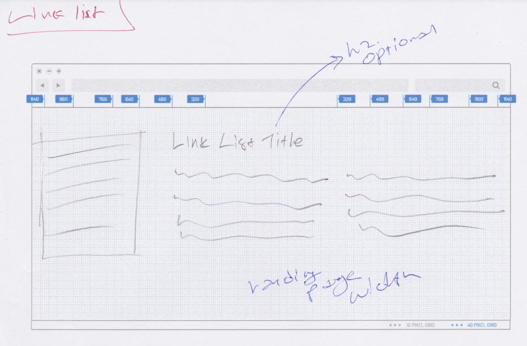 Two versions of a link list component were designed to accommodate the need to list a number of links, both internal and external.