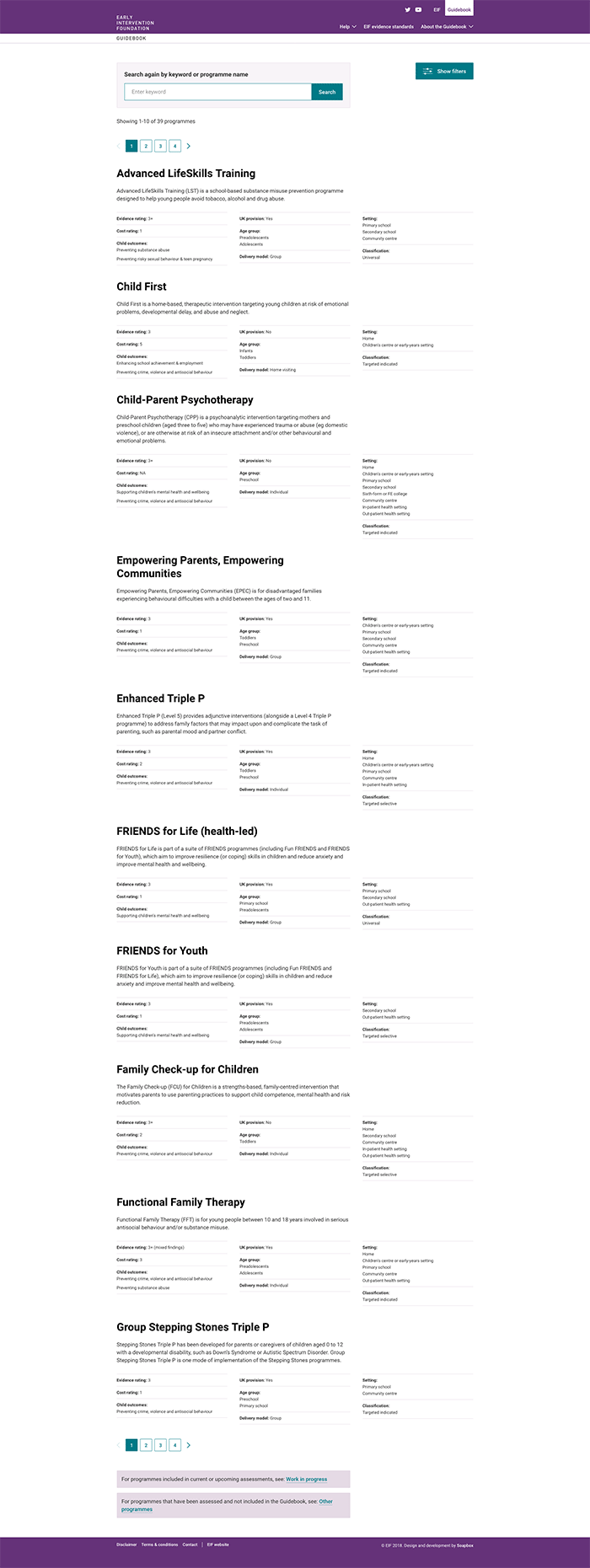 The EIF Guidebook provides information about early intervention programmes that have been evaluated and shown to improve outcomes for children and young people.