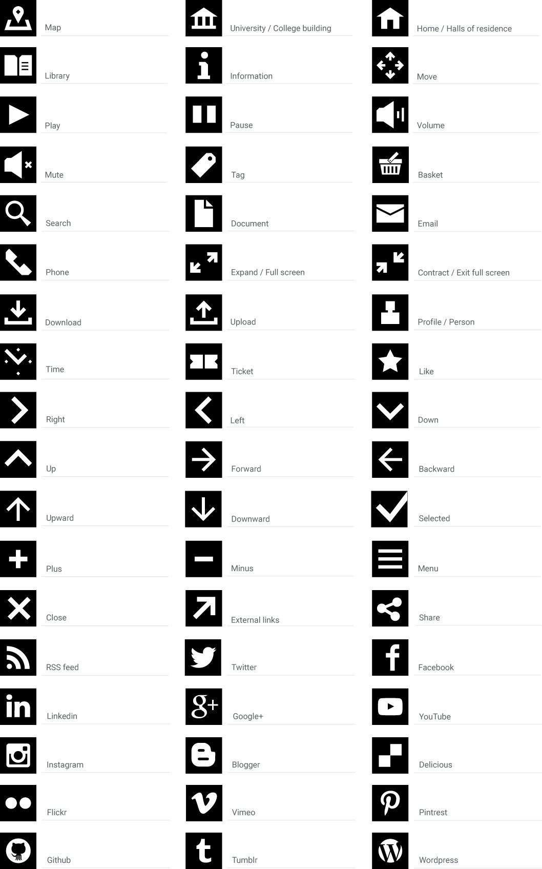 Original icon set, compiled as an iconfont through fontello.